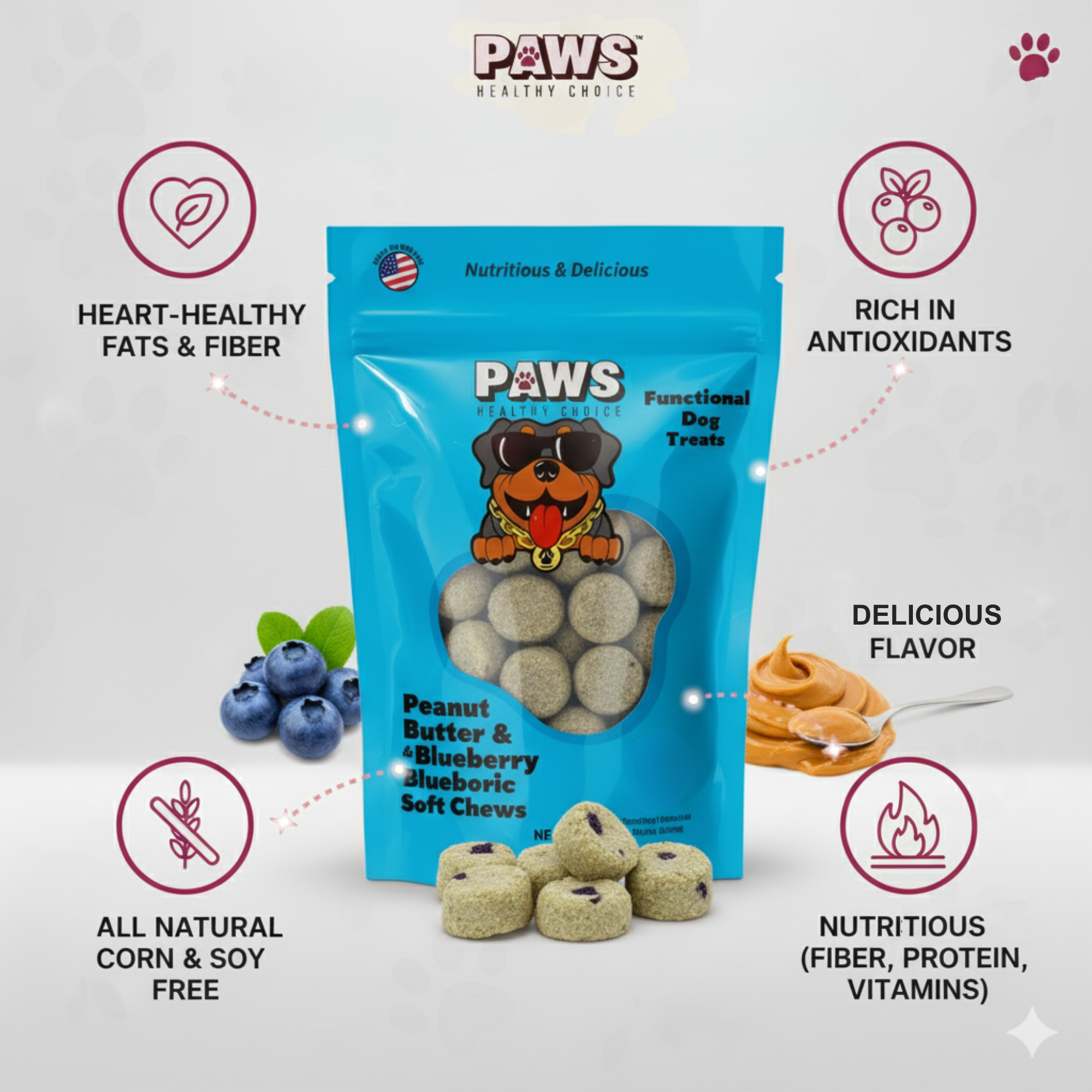 All-Natural Ingredients – Made with wholesome peanut butter and blueberries for safe, high-quality nutrition.